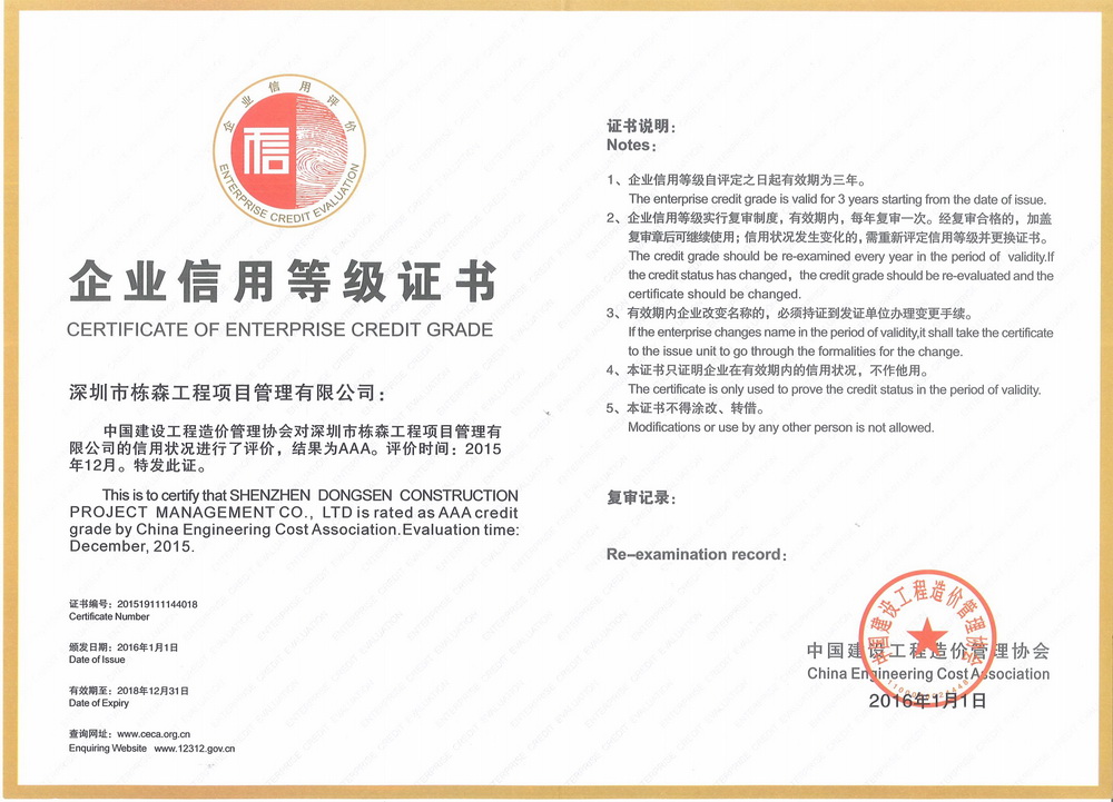 中國建設(shè)工程造價管理協(xié)會企業(yè)信用等級AAA |